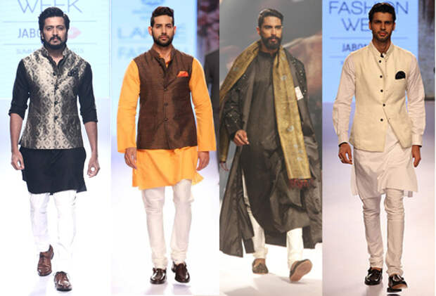 Raghavendra Rathore, the regal bespoke menswear collection was presented at the end of the show,which had brocade sherwanis, bandhgalas with breeches, kurtas with wide dhotis. Bollywood actor Ritesh Deshmukh turned showstopper for the designer walking the ramp in brocade bandhgala, black kurta with white churidar.