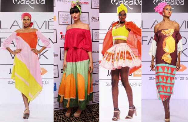 Nargis Fakhri second from left, Masaba Gupta Collection, LFW2015